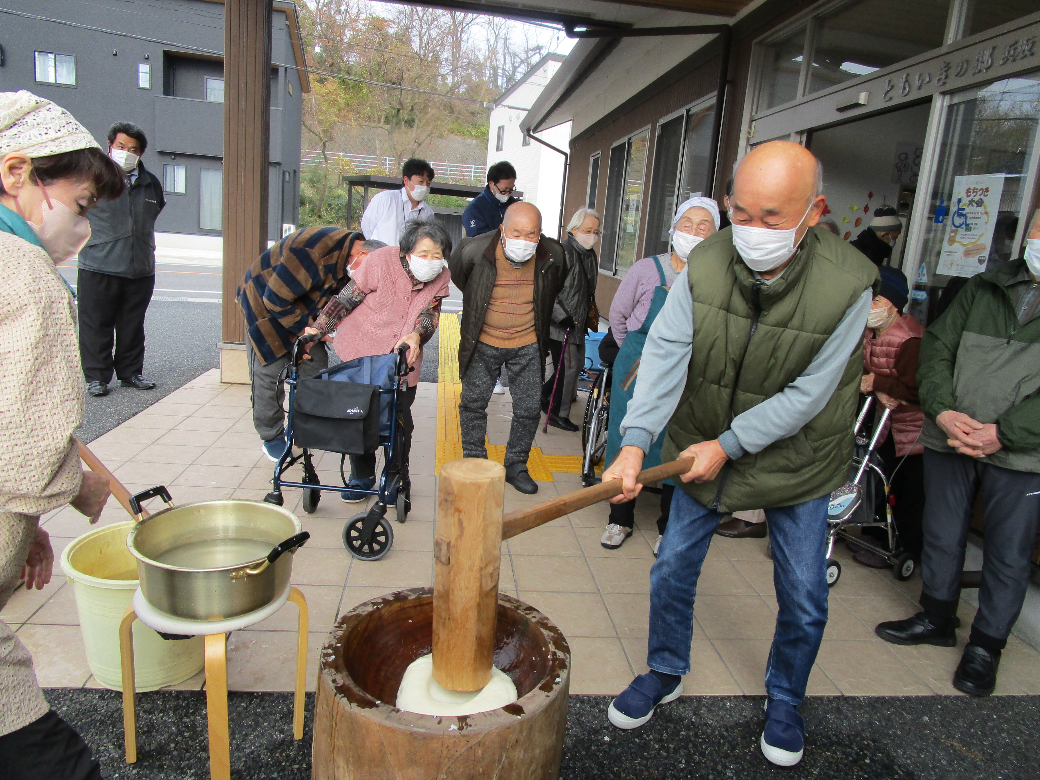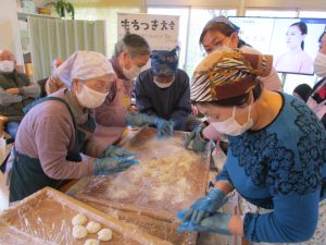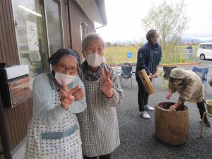 杵をつく掛け声で盛り上がり、美しくて柔らかいお餅が出来上がりました。