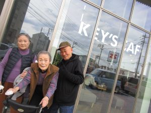 場所は湖山のお店「KEY’S CAFE」です!お洒落な店でテンションも上がります!ケーキも想像以上に大きくて…大満足でしたね!